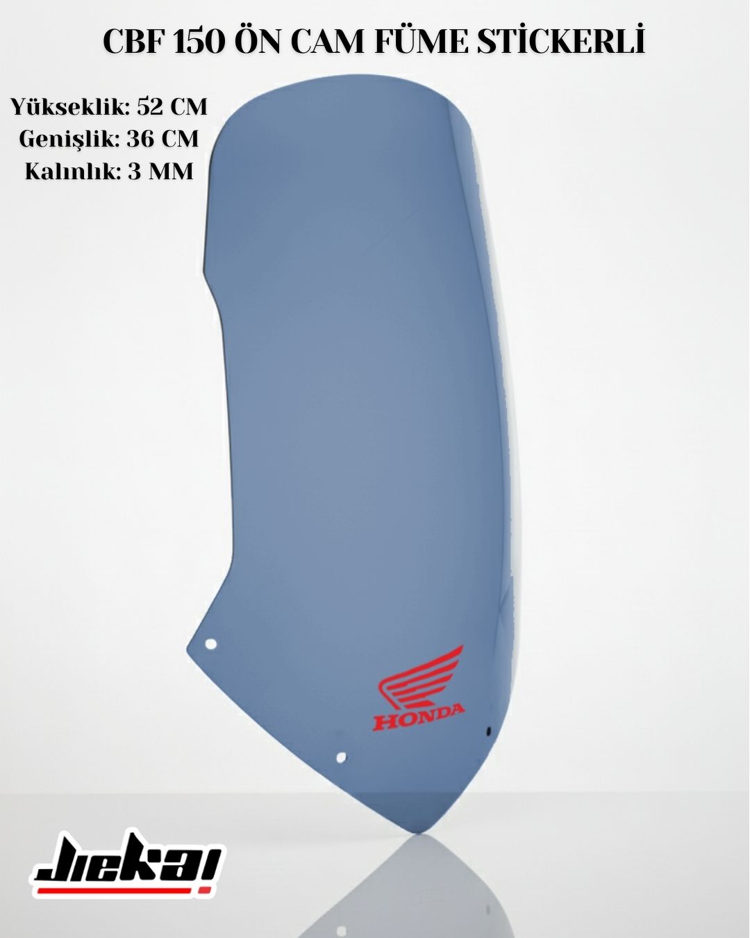 JİEKAİ CBF 150 Ön Cam – Füme, Honda Stickerlı (52x36 cm)
