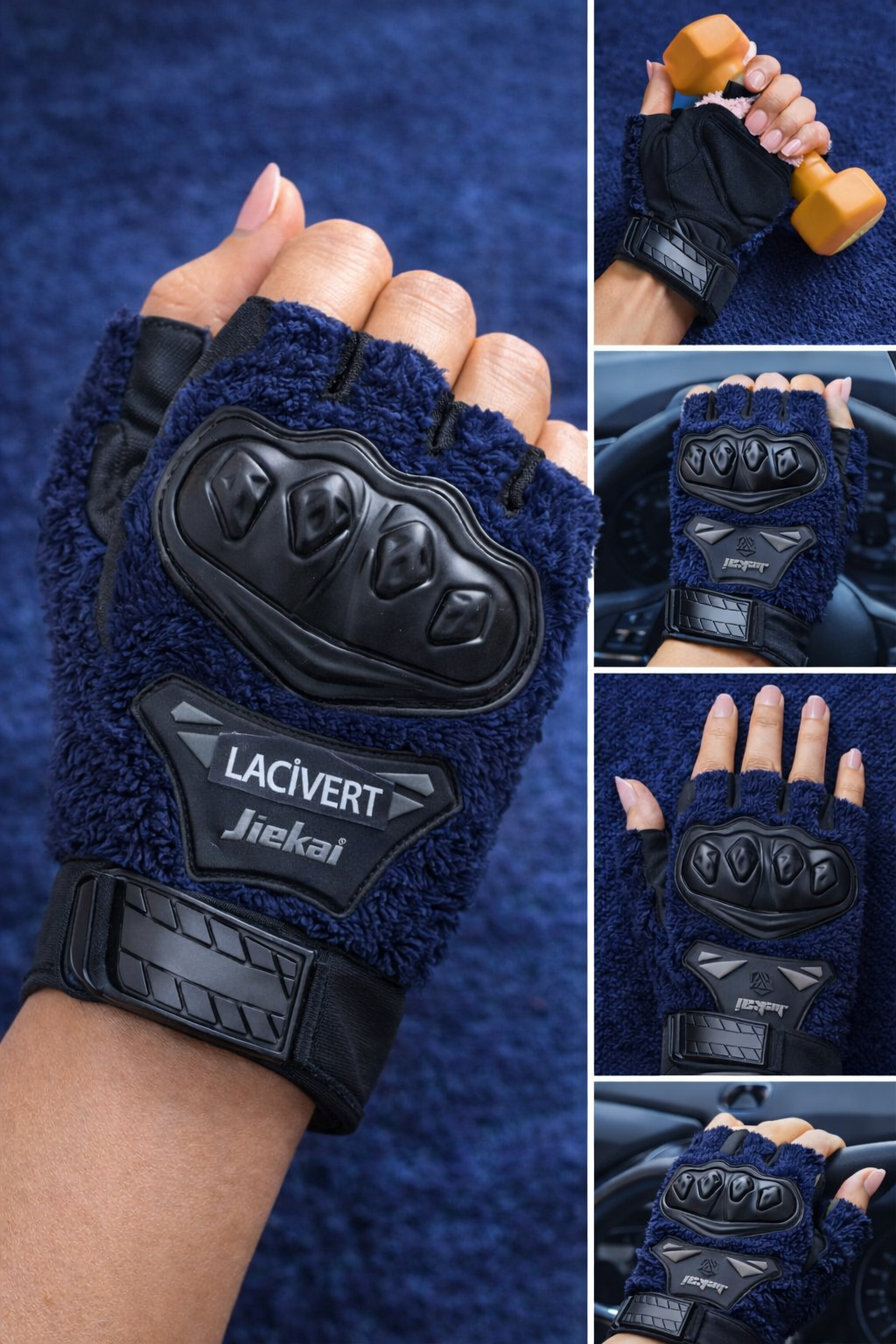 JK Peluşlu Yarım Eldiven – Lacivert Renk